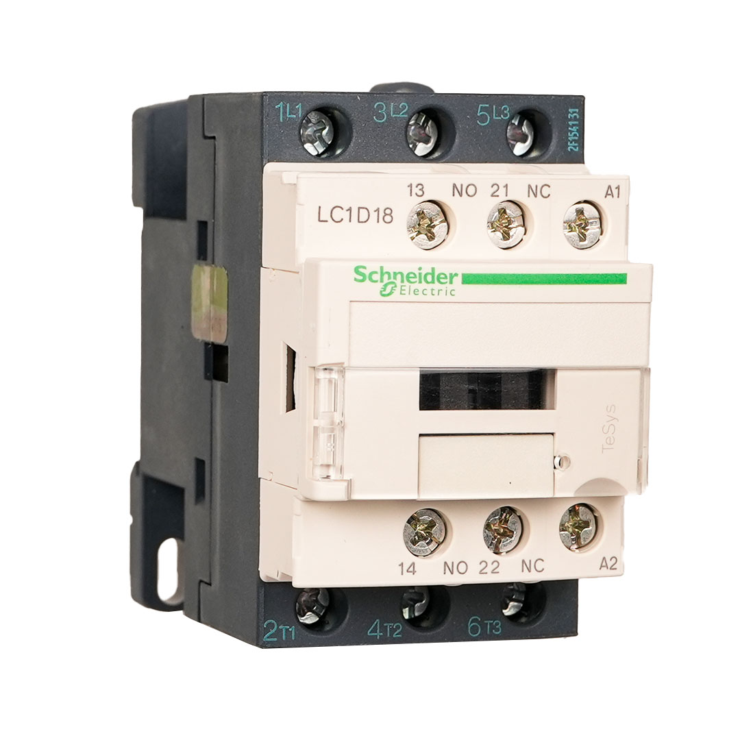 کنتاکتور قدرت اشنایدر الکتریک LC1D18M7 یکی از محصولات سری TeSys D است که برای کنترل و سوئیچینگ بارهای موتوری و صنعتی طراحی شده است. این مدل با جریان نامی 18 آمپر در کلاس کاری AC-3 قابلیت راهاندازی و توقف موتورهای سهفاز تا توان 7.5 کیلووات را دارد. ولتاژ بوبین آن 220 ولت AC است (کد M7 در نامگذاری اشنایدر نشاندهندهی همین ولتاژ است).